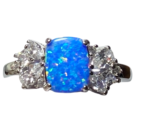 Sterling Silver -Blue Opal - man made ring. Sizes 5, 6, 7, 8, 9, 10. SS268