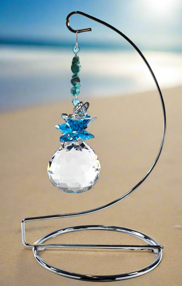 Decorative Butterfly Suncatcher – Crystals & Turquoise Gemstones with Stand