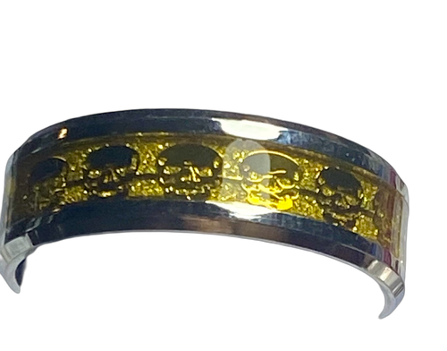 Stainless Steel - Silver with gold skull pattern ring. Size 14. RW250b