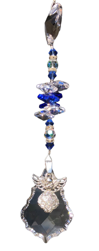 Angel starburst crystal suncatcher, decorated with blue lace agate gemstones