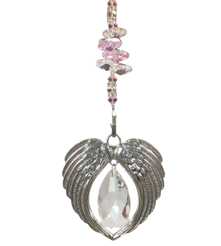 Angel Wings suncatcher is decorated with stunning Crystals and Rose Quartz gemstones