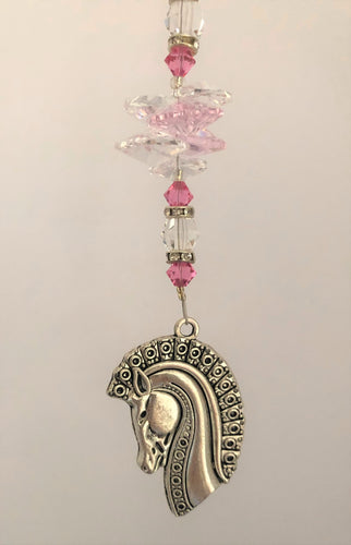 This beautiful Horse suncatcher which is decorated with crystals and Rose Quartz
