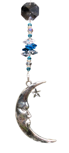 Moon suncatcher is decorated with crystals and clear quartz gemstones