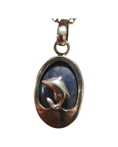 Lapis Lazuli Dolphin Sterling Silver Pendant (P33)