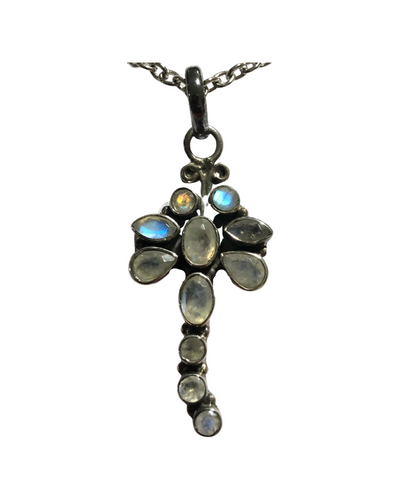Moonstone Dragonfly Sterling Silver Pendant (P401)