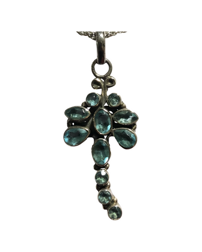 Blue Topaz dragonfly sterling silver pendant (P94)