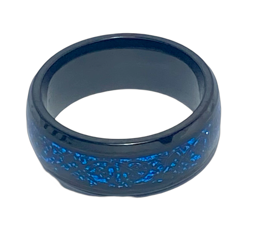 Stainless Steel - Black with blue pattern ring. Sizes 5, 6, 7, 8, 9, 10, 11, 12, 13 RW247