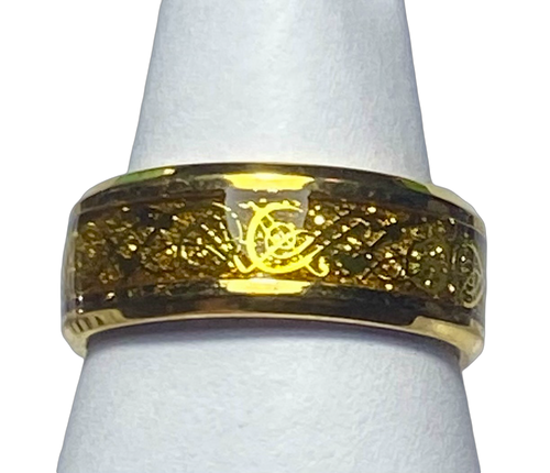 Stainless Steel - Gold with gold pattern ring. Sizes 5, 6, 7, 8, 9, 10, 11, 12, 13, 14. RW251