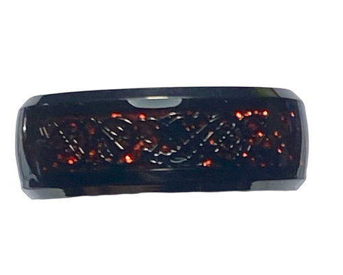 Stainless Steel - Black with red pattern ring. Sizes 5, 6, 7, 8, 9, 10, 11, 12, 13, 14. RW249