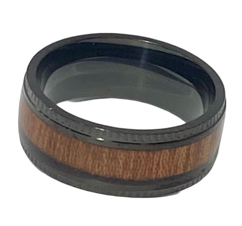 Stainless Steel - Black & wood ring. Sizes 6, 7, 8, 9, 10, 11, 12, 13 RW230