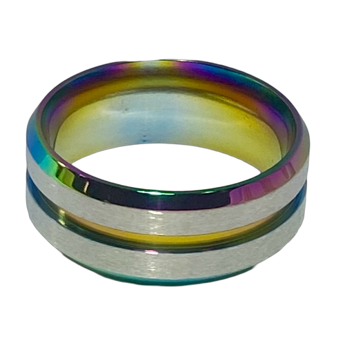 Stainless Steel - Rainbow & Silver ring. Sizes 6, 7, 8, 9, 10, 11, 12 RW226