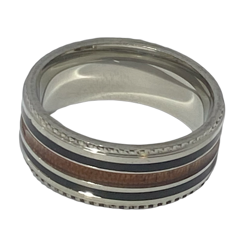Stainless Steel - Silver & wood ring. Sizes 6, 7, 8, 10, 11, 12, 13 RW231
