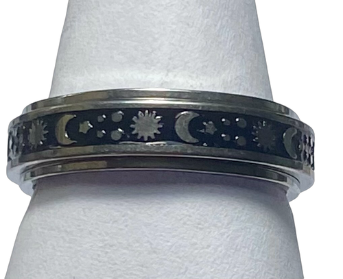 Fidget ring - Silver Stars & moons ring. Sizes 6, 7, 8, 9, 10, 11. FR139