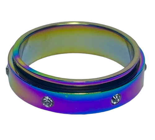 Fidget ring - Rainbow sparkle spinner. Sizes 6, 7, 8, 9, 10, 11. FR114