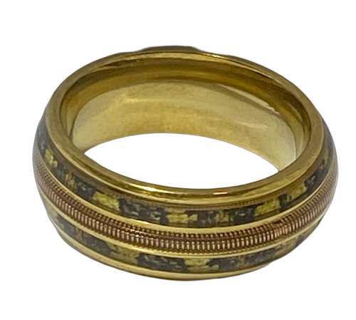 Stainless Steel - Gold pattern ring. Sizes 7, 8, 10, 11, 12, 13 RW232
