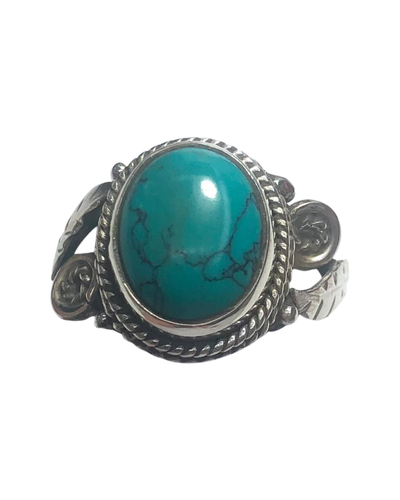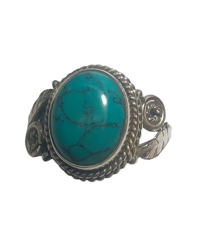 My collection of blue gemstones believed to enhance your communication ability includes the intricately designed silver turquoise ring that extends along the finger for an eye-catching look.