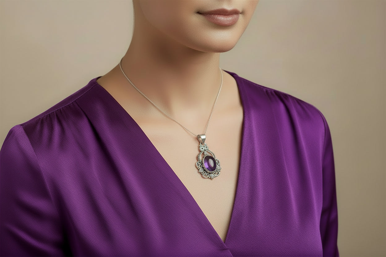 Amethyst sterling silver pendant PN95Measures approx. 35mm x 17mm Chain not included