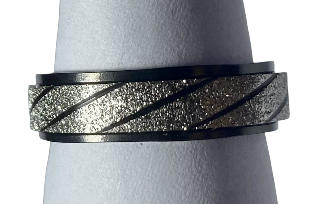 Fidget ring - Black and silver glitter ring. FR118