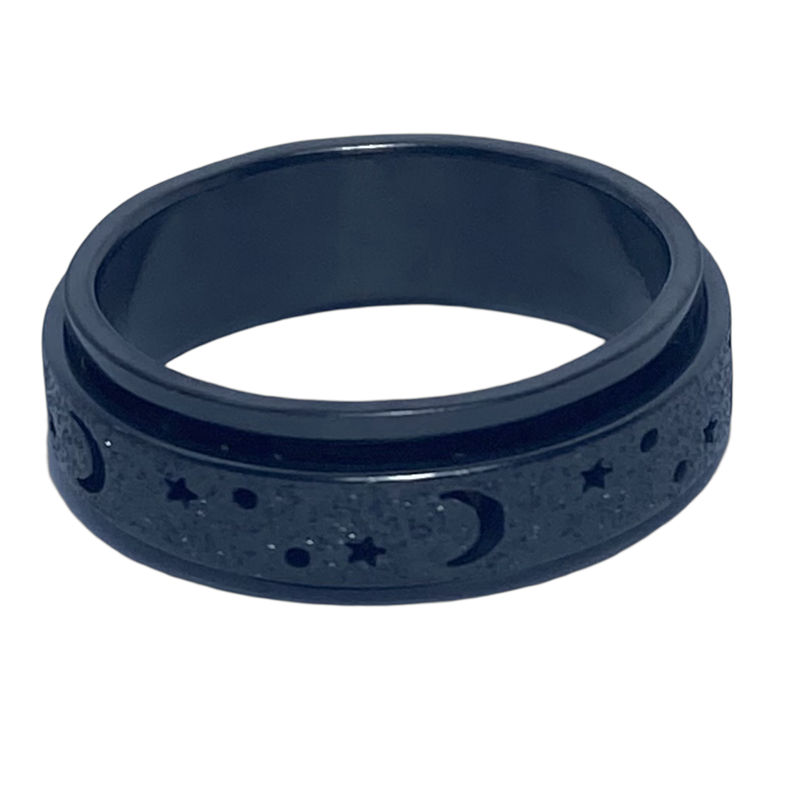 Fidget ring - Black glitter moons & stars spinner. Sizes 5, 6, 8, 9, 10, 11, 12. FR123