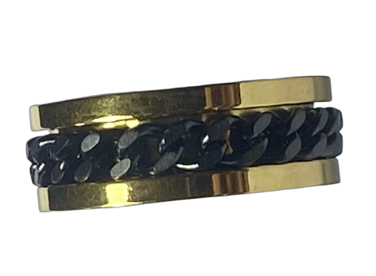 Fidget ring - Gold and black chain ring spinner. Sizes 5, 6, 7, 8, 9, 10, 11, 12, 13, 14. FR111