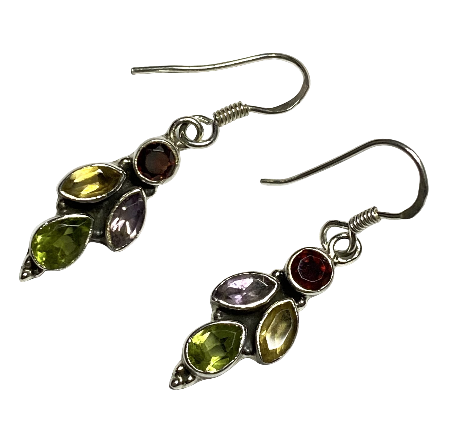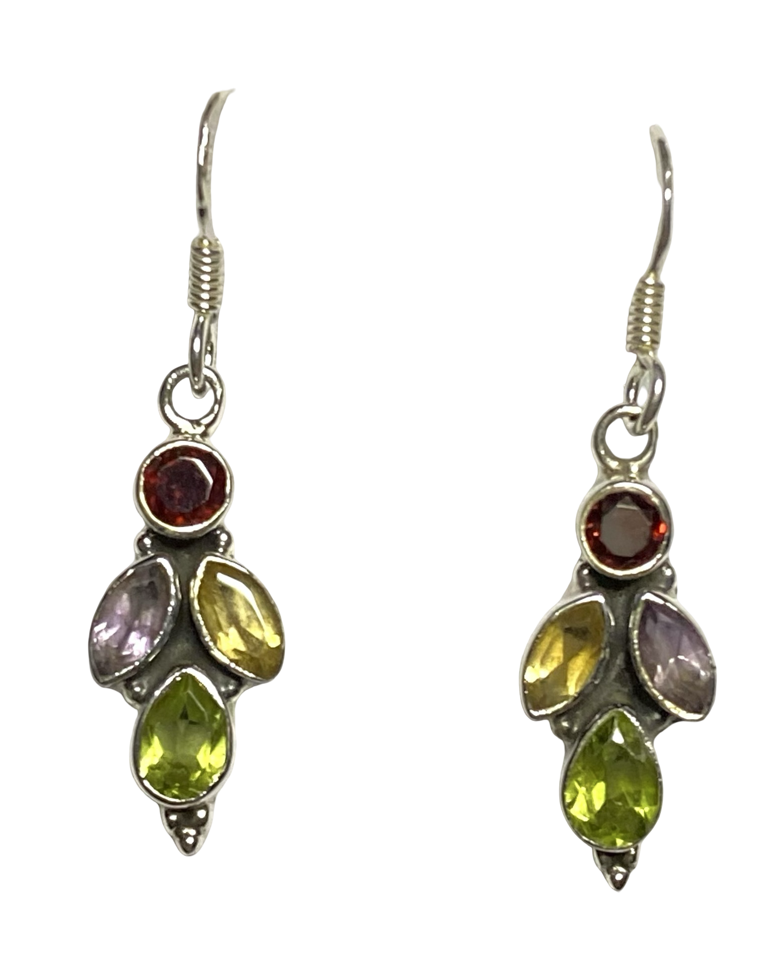 Garnet, Amethyst, Citrine and Peridot sterling silver earrings ER130