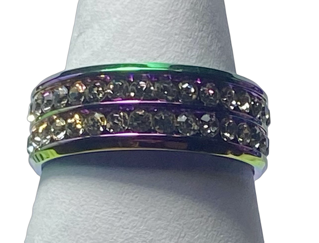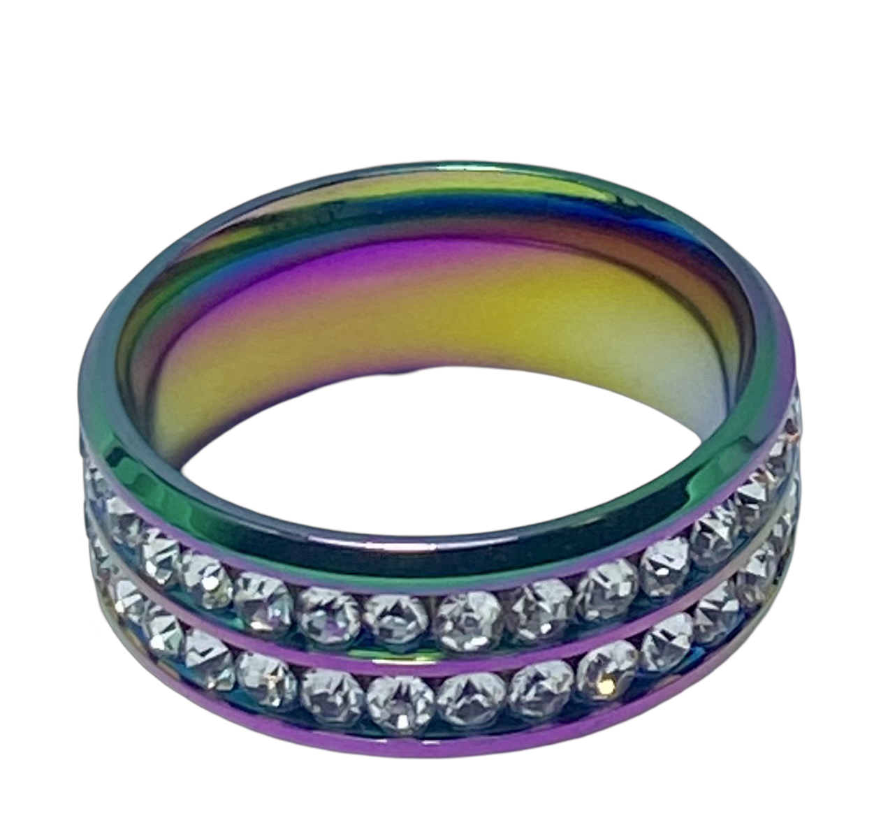 Stainless Steel - Rainbow sparkle ring. Sizes 5, 6, 8, 9, 10, 11, 12, 14 RW235