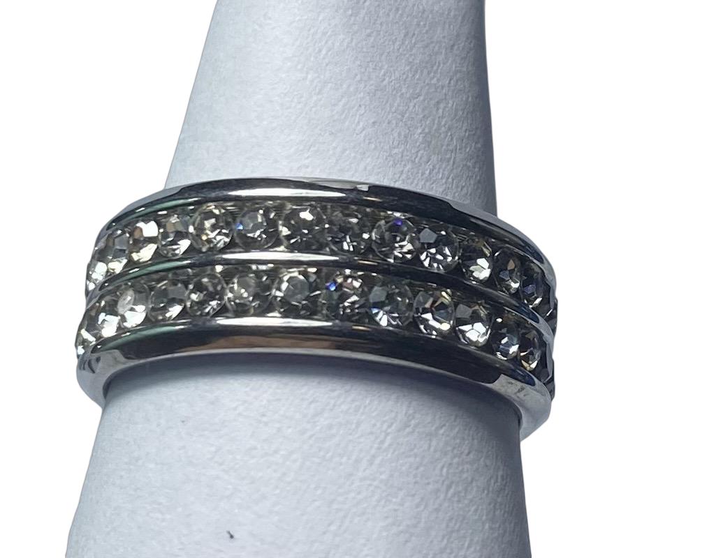 Stainless Steel - Silver sparkle ring. Sizes 5.5, 7, 8, 9, 10, 11, 12.5, 14. RW236