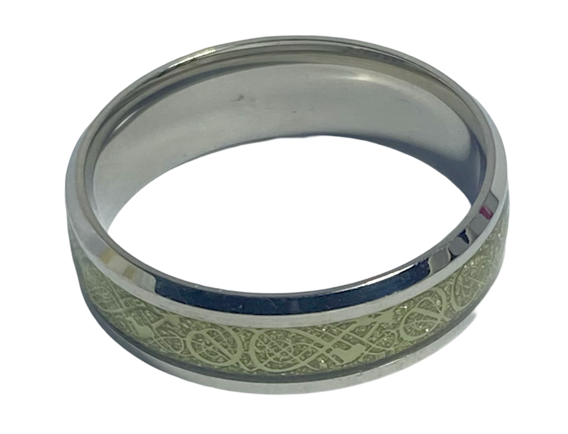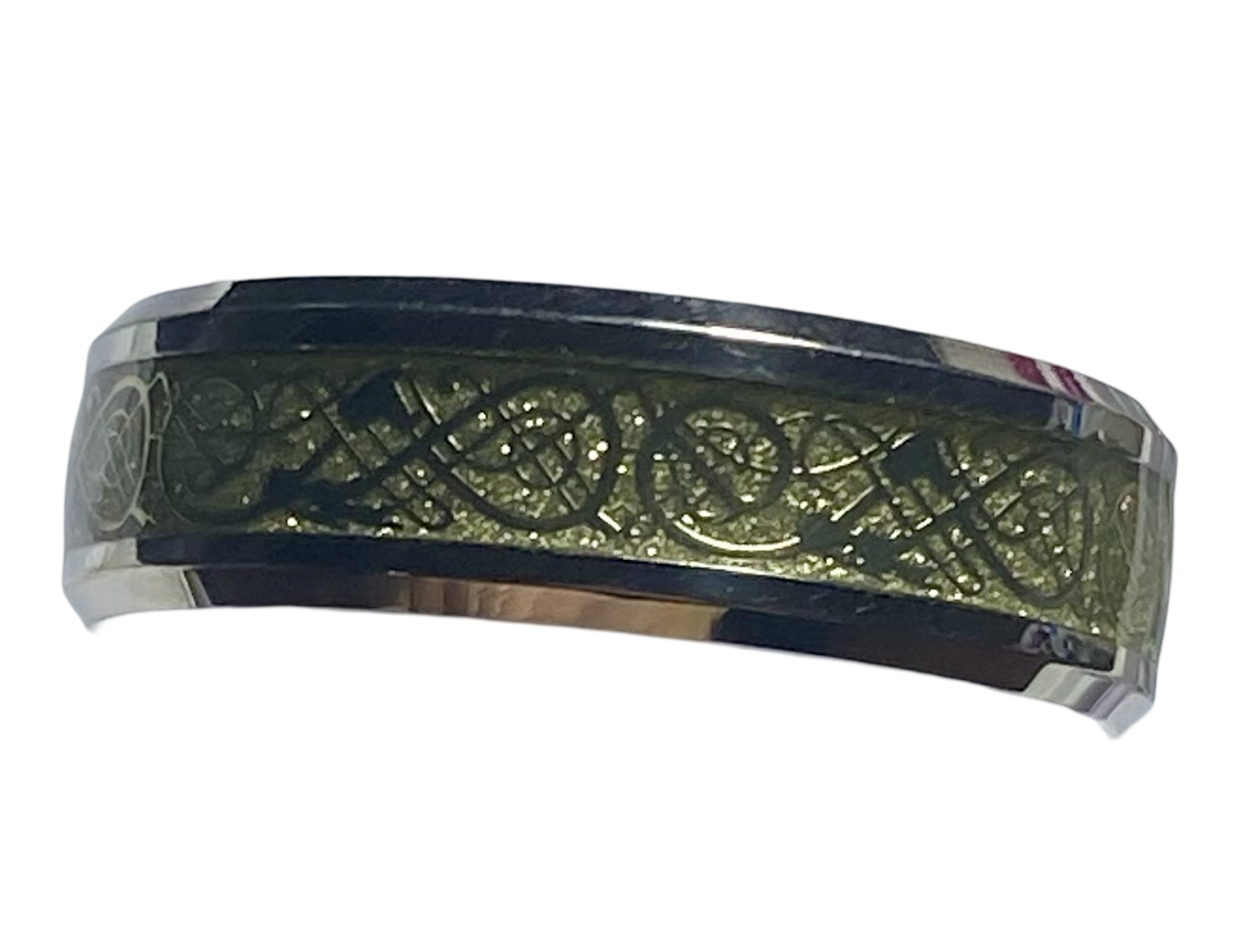 Stainless Steel - Silver with gold pattern ring. Size 14. RW245