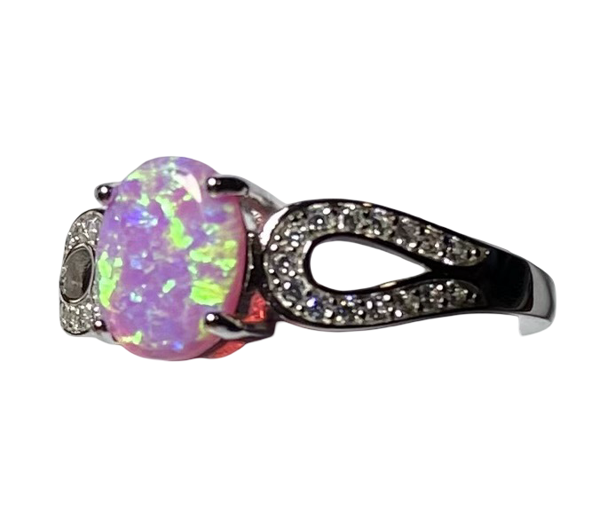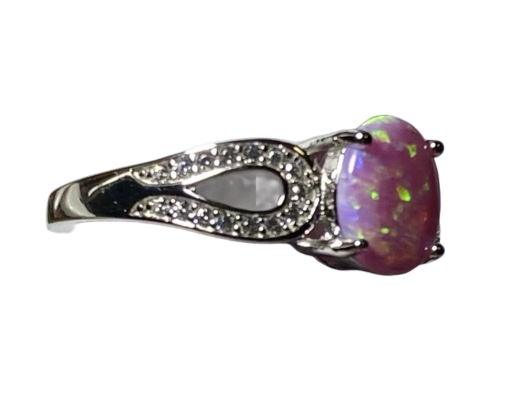 Sterling Silver - Pink opal - man made ring. Sizes 4, 5, 6, 7, 8, 9, 10. SS261